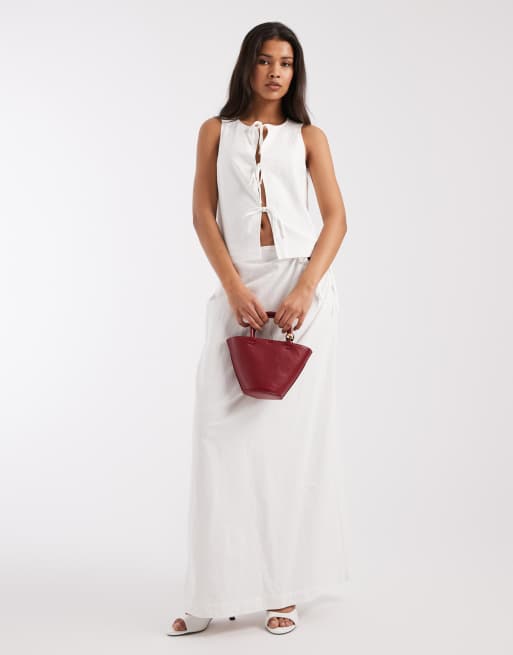 4th & Reckless - Coordinato da spiaggia in cotone bianco con gilet allacciato sul davanti e gonna lunga