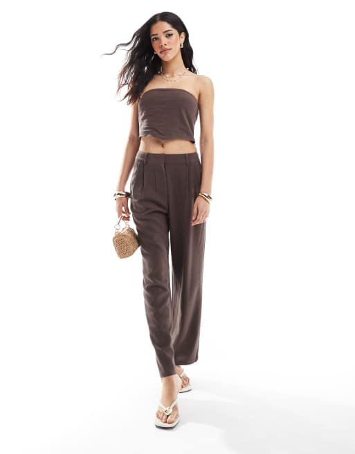 4th + Reckless - Coordinato in misto lino marrone con top a fascia drappeggiato stile fazzoletto e pantaloni con fondo ampio