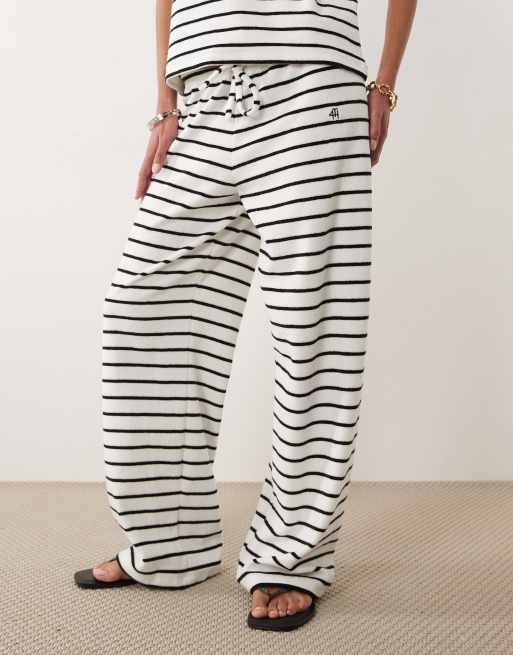4th & Reckless - Coordinato in spugna di misto cotone nero e bianco a righe con polo con colletto e pantaloncini
