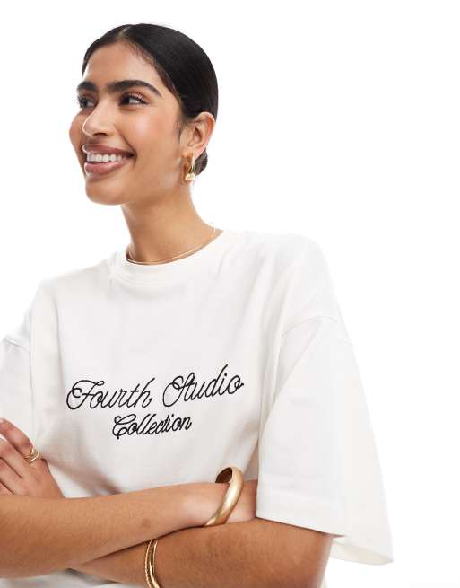 4th & Reckless - T-shirt color crema con logo ricamato "Fourth Studio"
