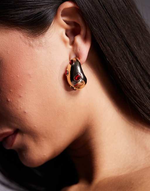 8 Other Reasons - Orecchini a cerchio spessi placcati oro 18 carati con pietre rosse