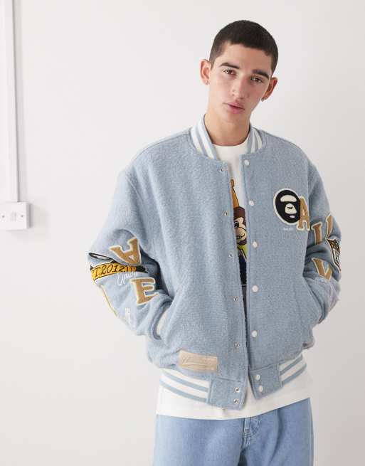 Aape by A Bathing Ape - Giacca bomber stile college azzurra con ricami sulle maniche
