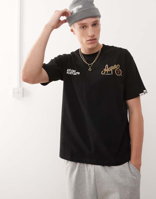 Aape by A Bathing Ape - T-shirt nera con stampa del logo in stile western sul retro