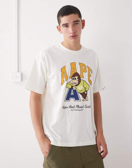 Aape by A Bathing Ape - T-shirt squadrata bianco sporco con stampa college sul petto