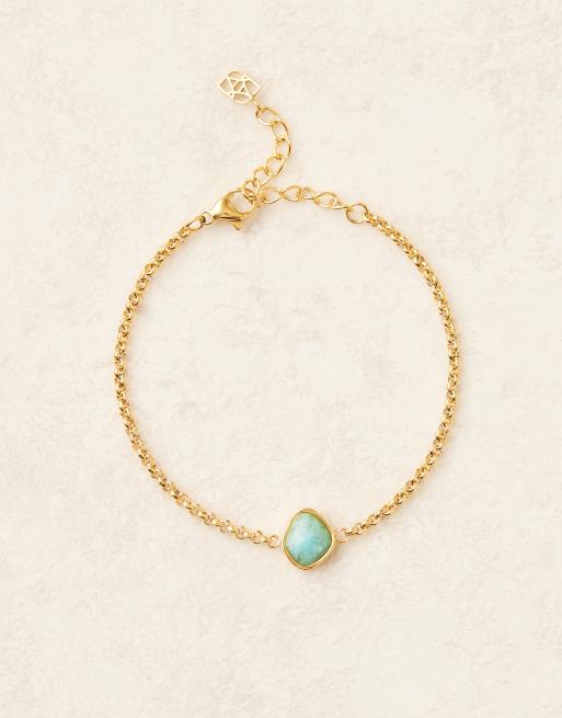 Abbott Lyon - Bracciale in acciaio inossidabile resistente all'acqua placcato oro 18 k con pietra blu in amazonite