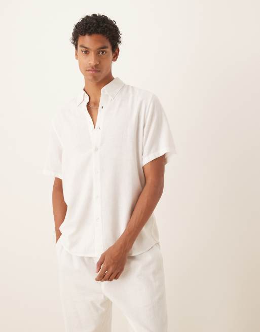 Abercrombie & Fitch - Camicia a maniche corte bianca in lino