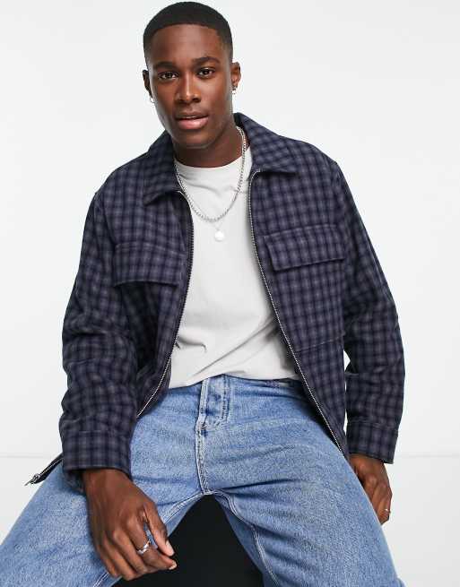 Abercrombie & Fitch - Camicia giacca oversize blu a quadri con zip sulla parte anteriore
