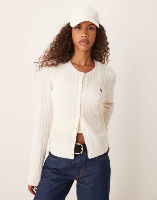 Abercrombie & Fitch - Cardigan in maglia a trecce color crema con logo