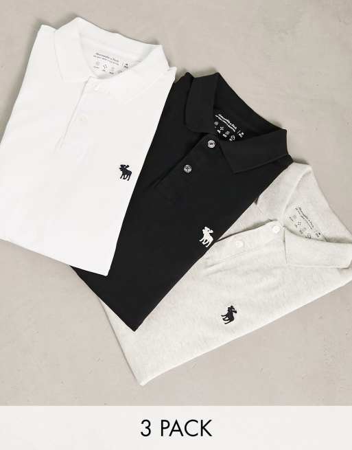 Abercrombie & Fitch - Confezione da 3 polo in piqué con logo bianco/grigio/nero