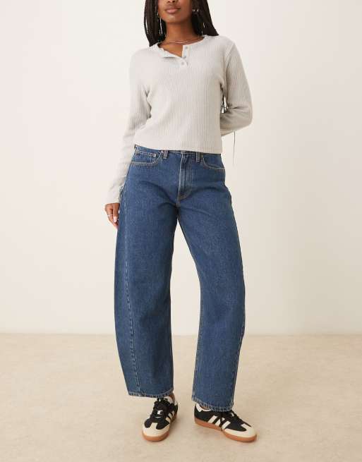 Abercrombie & Fitch - Curve Love - Jeans bombati a vita medio alta lavaggio medio
