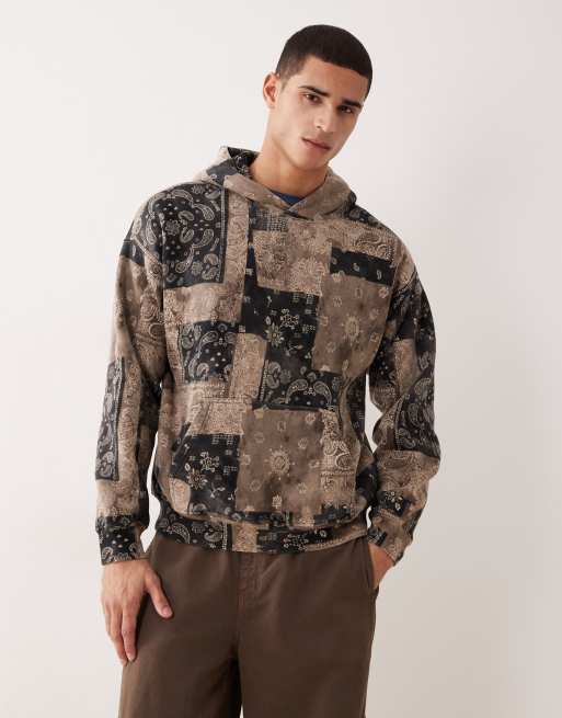 Abercrombie & Fitch - Essential - Felpa con cappuccio marrone con grafica fantasia