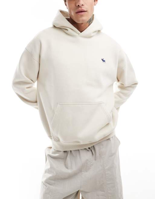 Abercrombie & Fitch - Icon - Felpa con cappuccio beige con logo ricamato