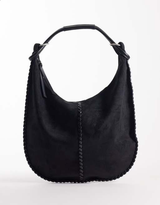 Abercrombie & Fitch - Maxi borsa nera in camoscio sintetico con cuciture a sopraggitto