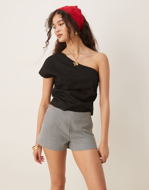 Abercrombie & Fitch - Pantaloncini sartoriali a vita medio alta neri a quadretti