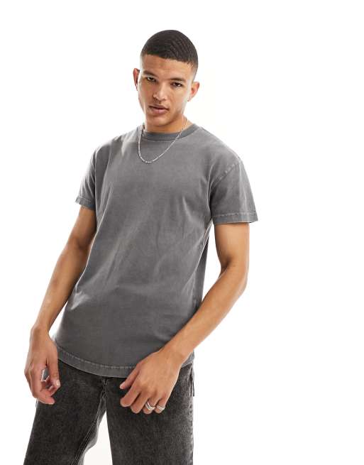 Abercrombie & Fitch - T-shirt grigia lavaggio acido con fondo arrotondato