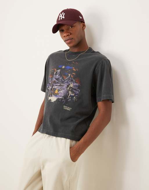 Abercrombie & Fitch - T-shirt nero slavato a maniche corte con stampa western