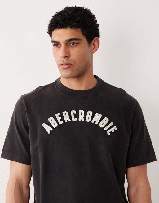 Abercrombie & Fitch - T-shirt nero slavato con patch con logo