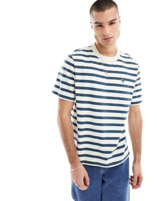 Abercrombie & Fitch - T-shirt pesante a righe bianche e blu con logo