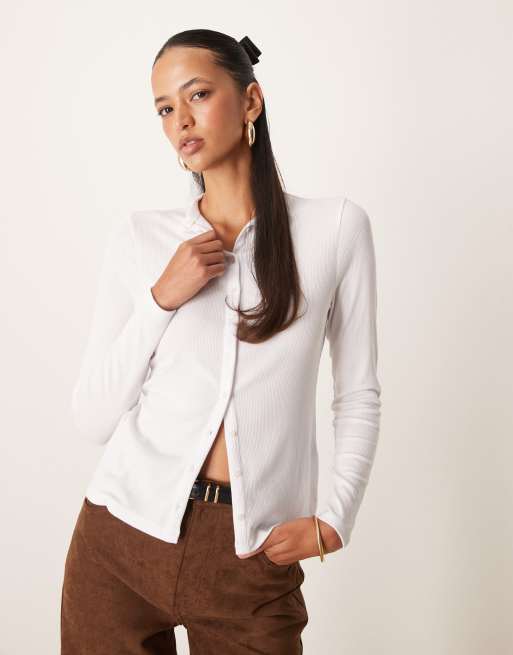Abercrombie & Fitch - Top a maniche lunghe bianco con bottoni