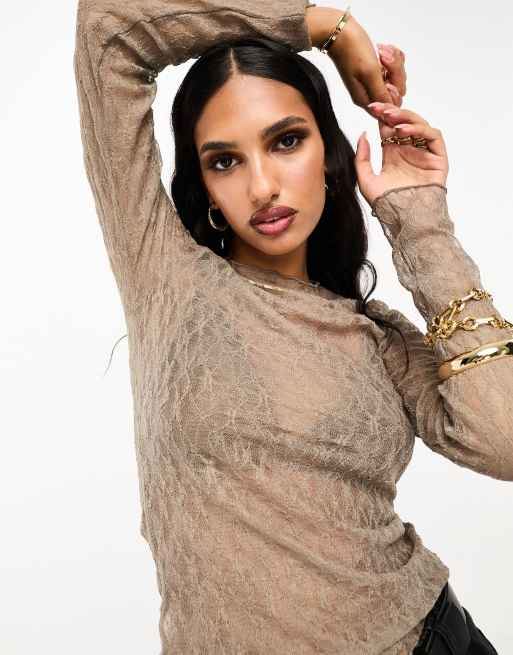 Abercrombie & Fitch - Top a maniche lunghe in pizzo marrone