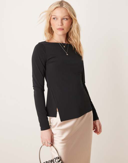 Abercrombie & Fitch - Top asimmetrico nero con scollo a barchetta