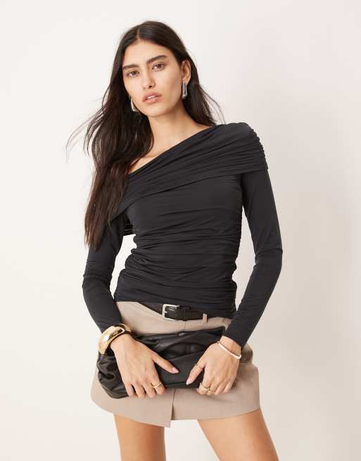 Abercrombie & Fitch - Top trasparente nero con risvolto