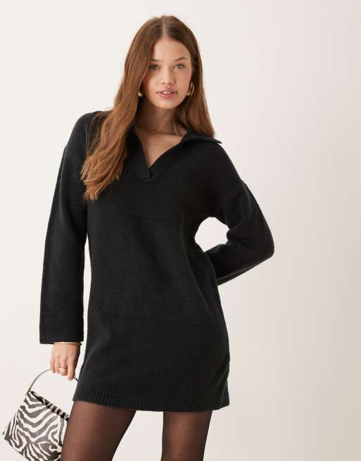Abercrombie & Fitch - Vestito a maniche lunghe in maglia nero con colletto