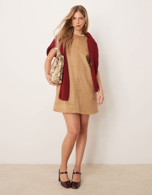 Abercrombie & Fitch - Vestito blazer senza maniche in camoscio sintetico color cuoio