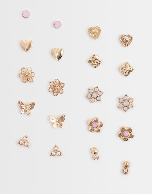 Accessorize - Confezione da 10 paia di orecchini a bottone con fiori rosa