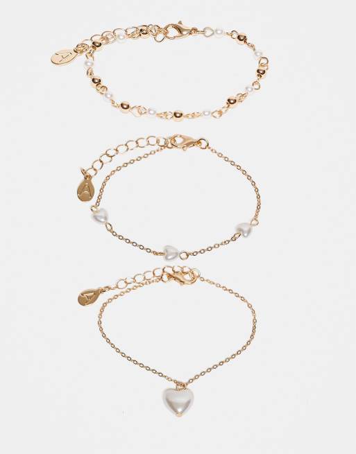 Accessorize - Confezione da 3 bracciali delicati con cuore e perle sintetiche tonalità oro