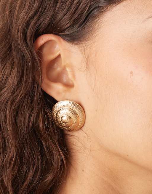 Accessorize - Orecchini a bottone tonalità oro con design spazzolato a forma di conchiglia a spirale