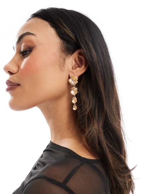 Accessorize - Orecchini pendenti appariscenti dorati con fiore