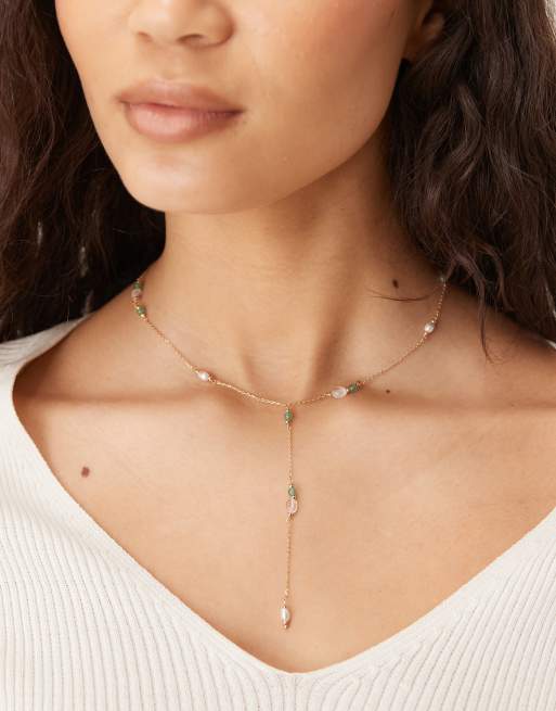Accessorize - Z - Collana lariat placcata in oro 14K con pietra avventurina