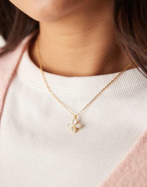 Accessorize - Z - Collana placcata oro con pendente con perle a forma di quadrifoglio