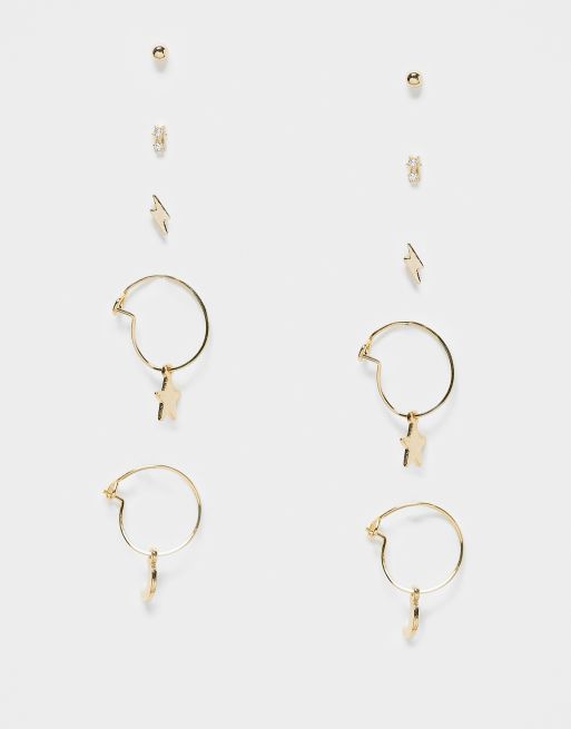 Accessorize - Z Collection - Confezione da 5 orecchini a cerchio e a bottone placcati dorata