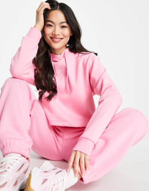 adidas Originals - Essentials - Felpa corta con cappuccio rosa