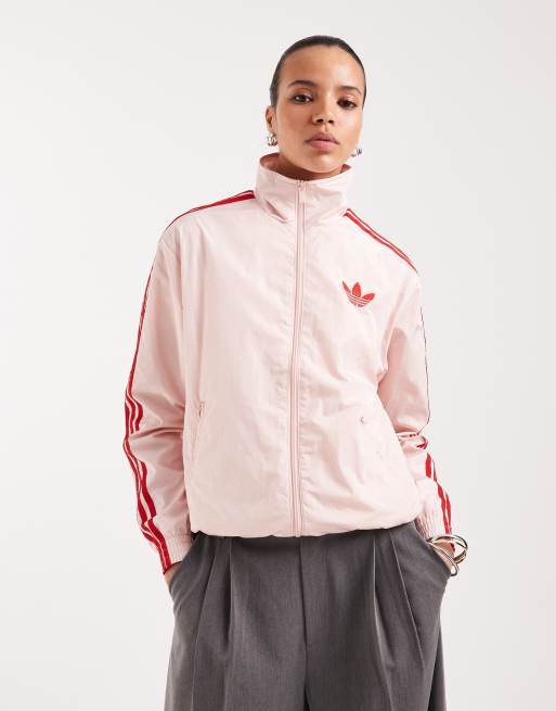 adidas Originals - Firebird - Top sportivo ampio in nylon rosa e rosso