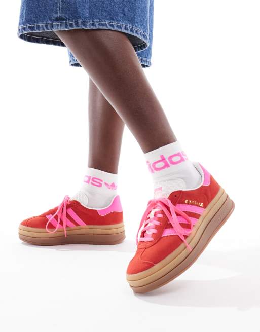 adidas Originals - Gazelle Bold - Sneakers rosse e rosa con suola platform