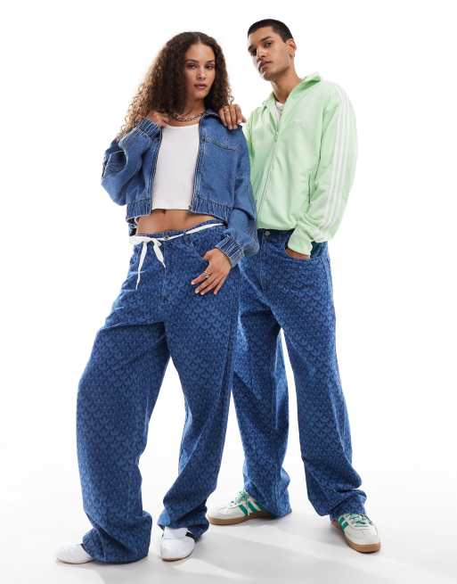 adidas Originals - Jeans blu denim con monogramma a trifoglio