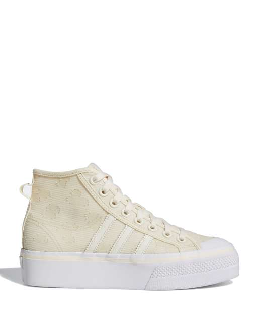 adidas Originals - Nizza - Sneakers alte bianche e beige con plateau