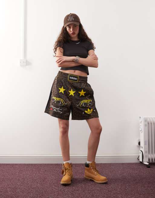 adidas Originals - Pantaloncini con stampa leopardata stile boxe