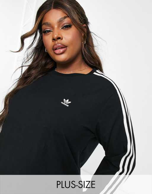adidas Originals Plus - Maglietta a maniche lunghe nera con 3 strisce