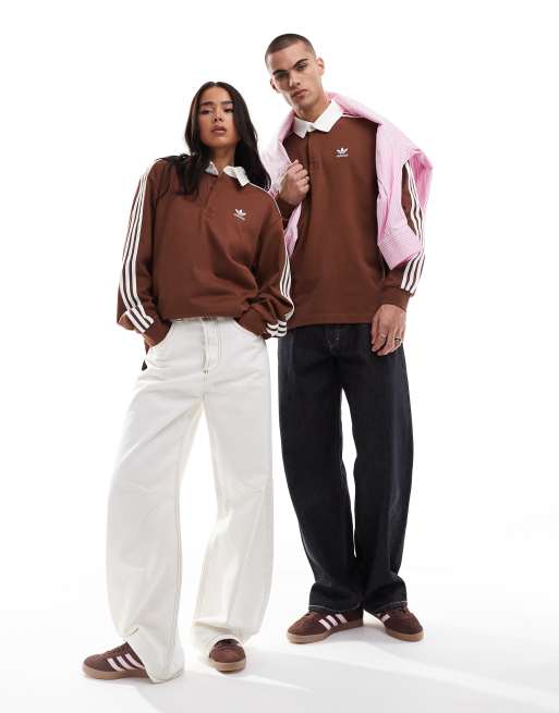 adidas Originals - Polo stile rugby marrone invecchiato