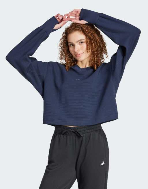 adidas - All Szn - Felpa color inchiostro leggenda a coste con scollo a V