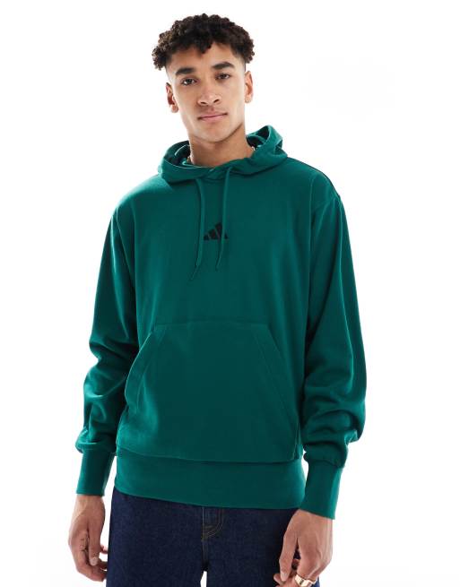 adidas - Essentials Feelcozy - Felpa con cappuccio in spugna verde college e nera