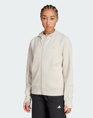 adidas Originals - D4T - Felpa con cappuccio e zip intera beige