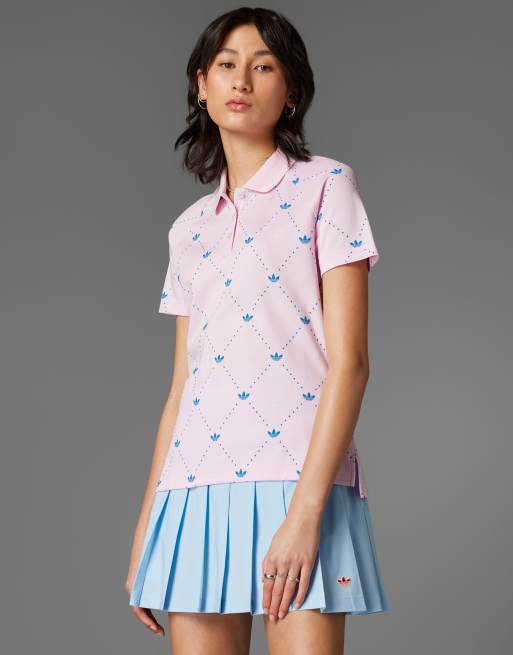 adidas Originals - Polo da golf rosa limpido / blu bird con stampa di trifogli