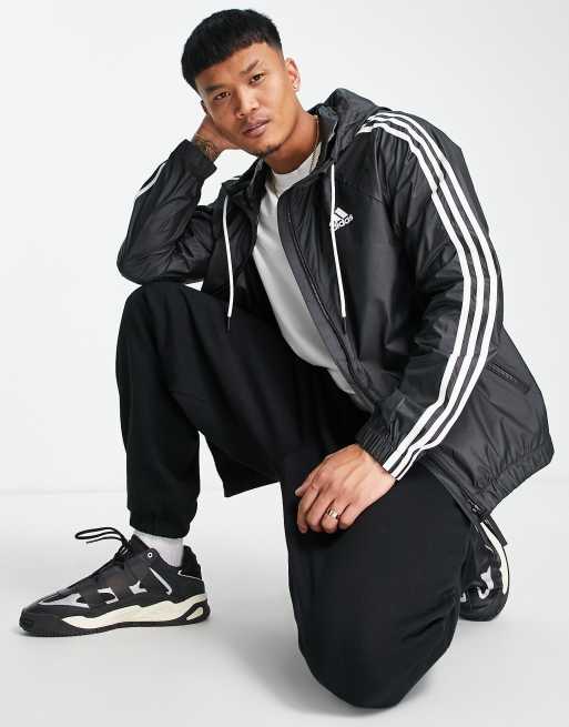 adidas - Outdoors - Giacca vento nera con 3 strisce