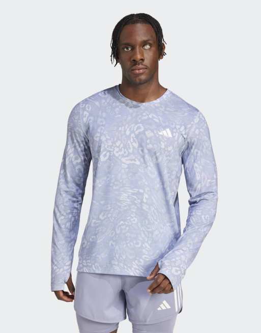 adidas Performance - Own The Run Climacool - T-shirt a maniche lunghe grigio dash / viola con 3 strisce