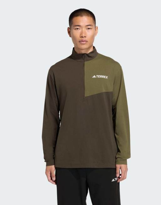 adidas performance - Terrex Multi Climacool - Maglietta a maniche lunghe verde oliva sfumato con zip corta